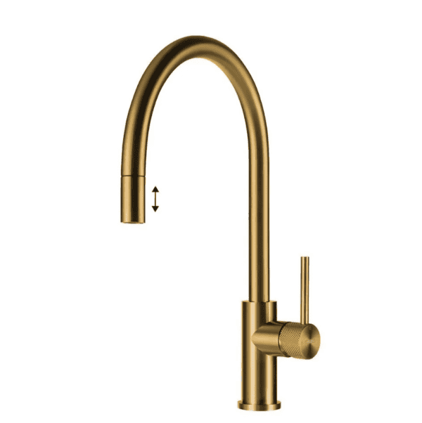 Eéngreeps Gold keukenkraan met uittrekbare uitloop passend bij Lorreine Gold spoelbakken